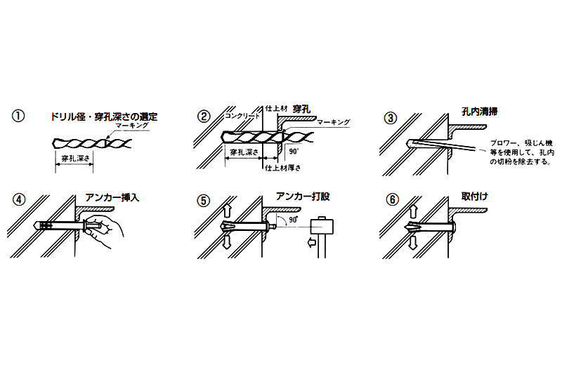 Profectique anchoram a striking clavum in anchoram. Et clavus expandit in ledo ancoram in concreto ut cingulo operculis. Aversa unfuelless anchoram idoneam ad applicationem operculis et leve Objects.